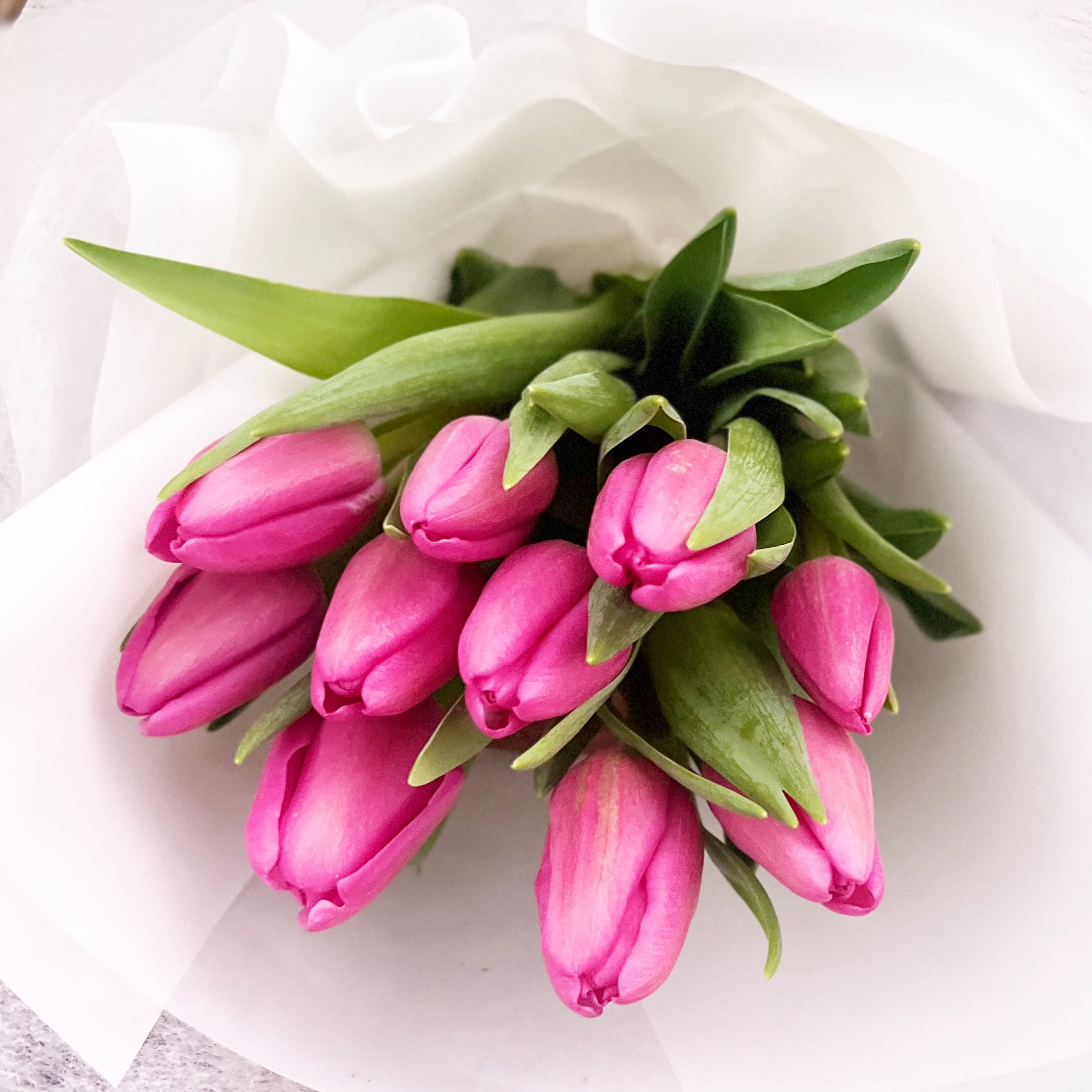 Everyone love tulips. Just can't resist its sweetness. We only pack nice and fresh tulips for your loved one. As shown in the photo, there is 15 tulips and you can upgrade for nicer package.